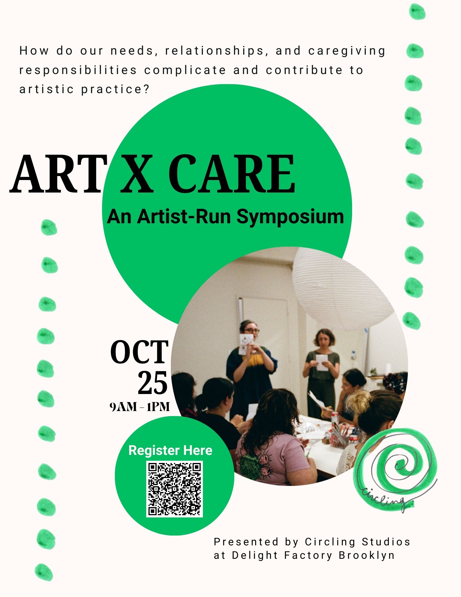 Join us for Art x Care, a half-day artist-run symposium exploring this question in community. This event brings together speakers with experience navigating caregiving alongside work in visual art, theater, academia, healthcare, and community organizing. Come together for a morning of connection, reflection, and practical insights for creating more sustainable systems of care, conceived for and by artists, arts workers and caregivers.