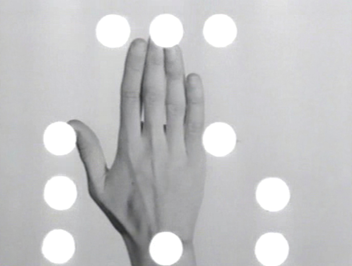 Yvonne Rainer, still from Hand Movie, 1966. 8mm film transferred to video, black and white, silent; 8 min. (c) Yvonne Rainer. Courtesy Museum of Modern Art, Video Data Bank, and School of the Art Institute of Chicago.