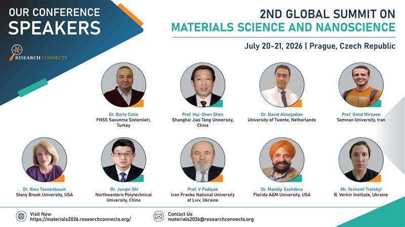 Materials Science and Engineering, Ceramics and Composite Materials Polymers Science and Technology, Advanced Nanomaterials, Mining and Metallurgy, Carbon Nanostructures and 2D Materials, Computational Modeling of Metals & Materials, Smart Materials and Applications, Metamaterials, Energy Materials, Advanced Materials Synthesis and Characterization, Nanomaterials and Nanotechnology, Thin Films...